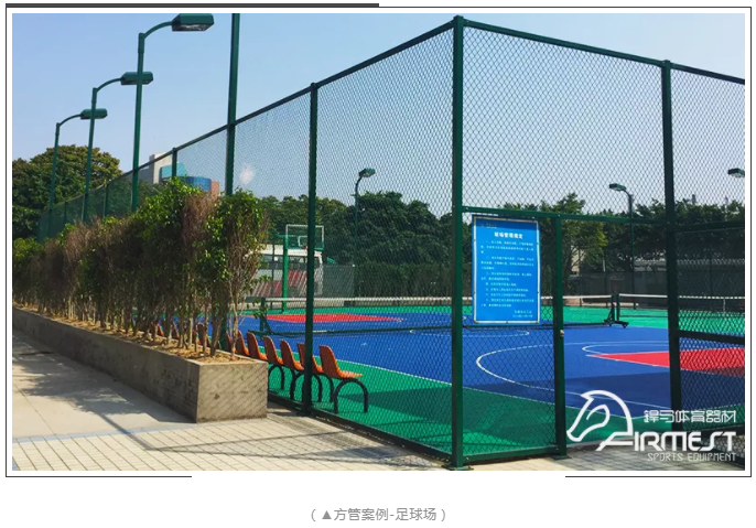 市面上大多数球网围网都以圆管为主,圆管的外观也看起来比较平滑,不过现在选择方管组合式围网的客户也逐渐增多,刚度和抗冲击强度极高,安装也非常方便,外观看起来更加稳重踏实。